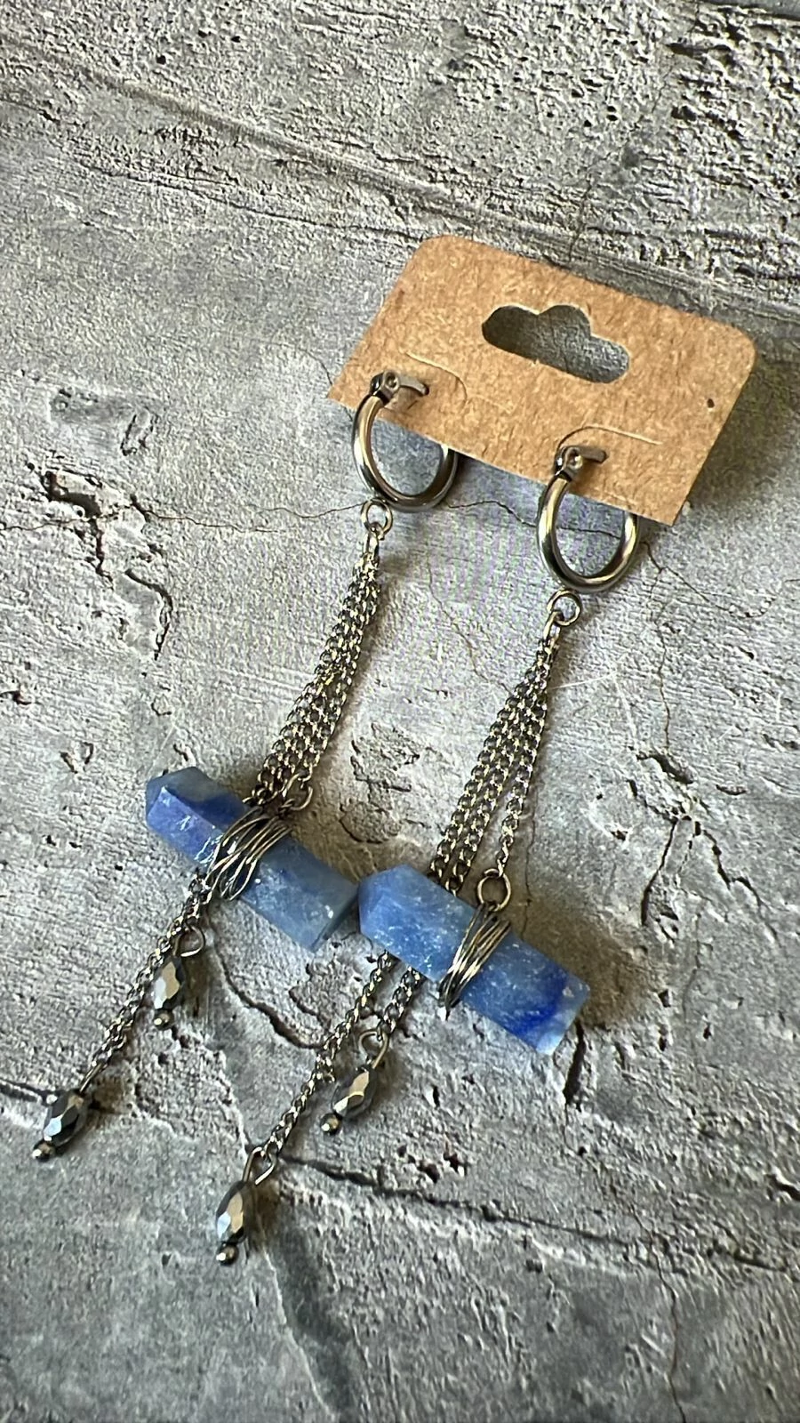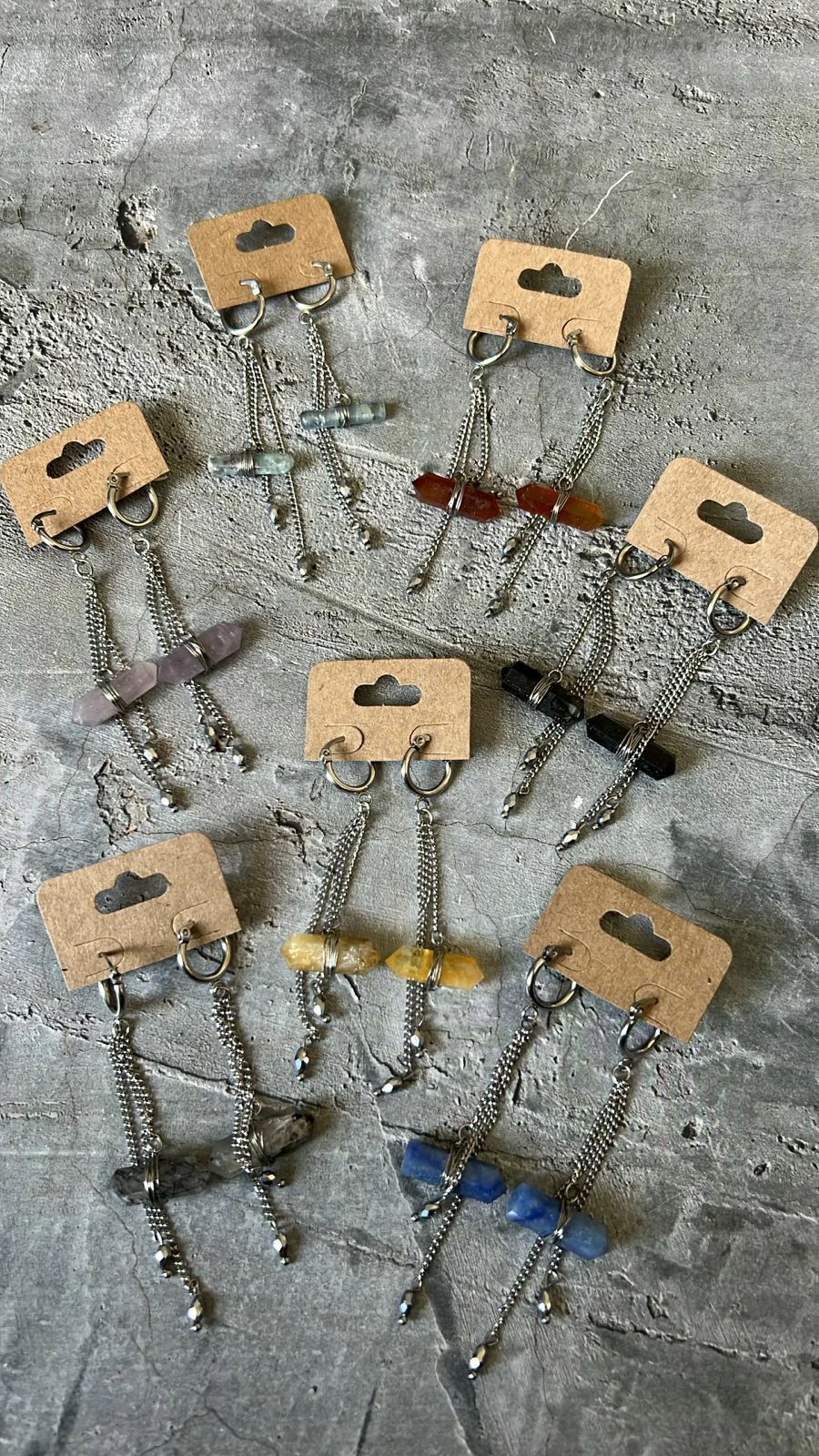 Brinco em aço inox com pedras naturais que podem conter variação de formato, cor e medida.